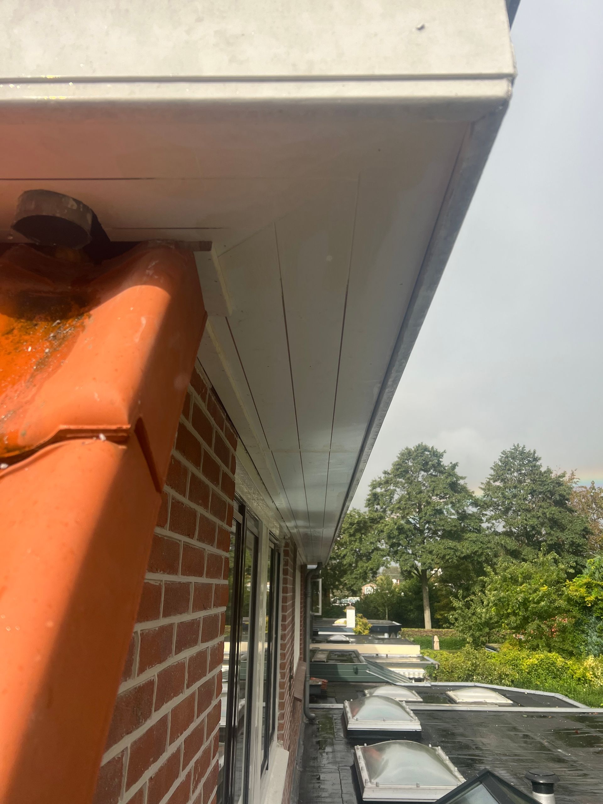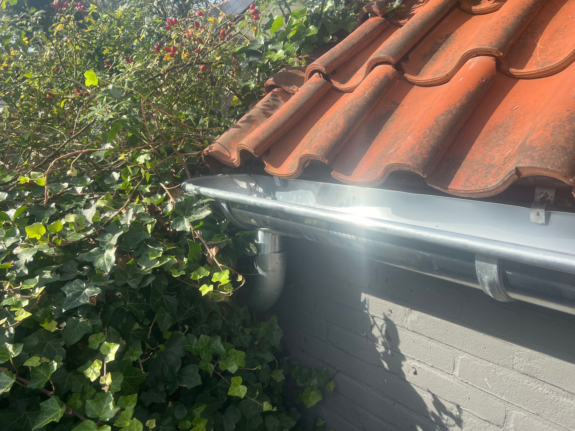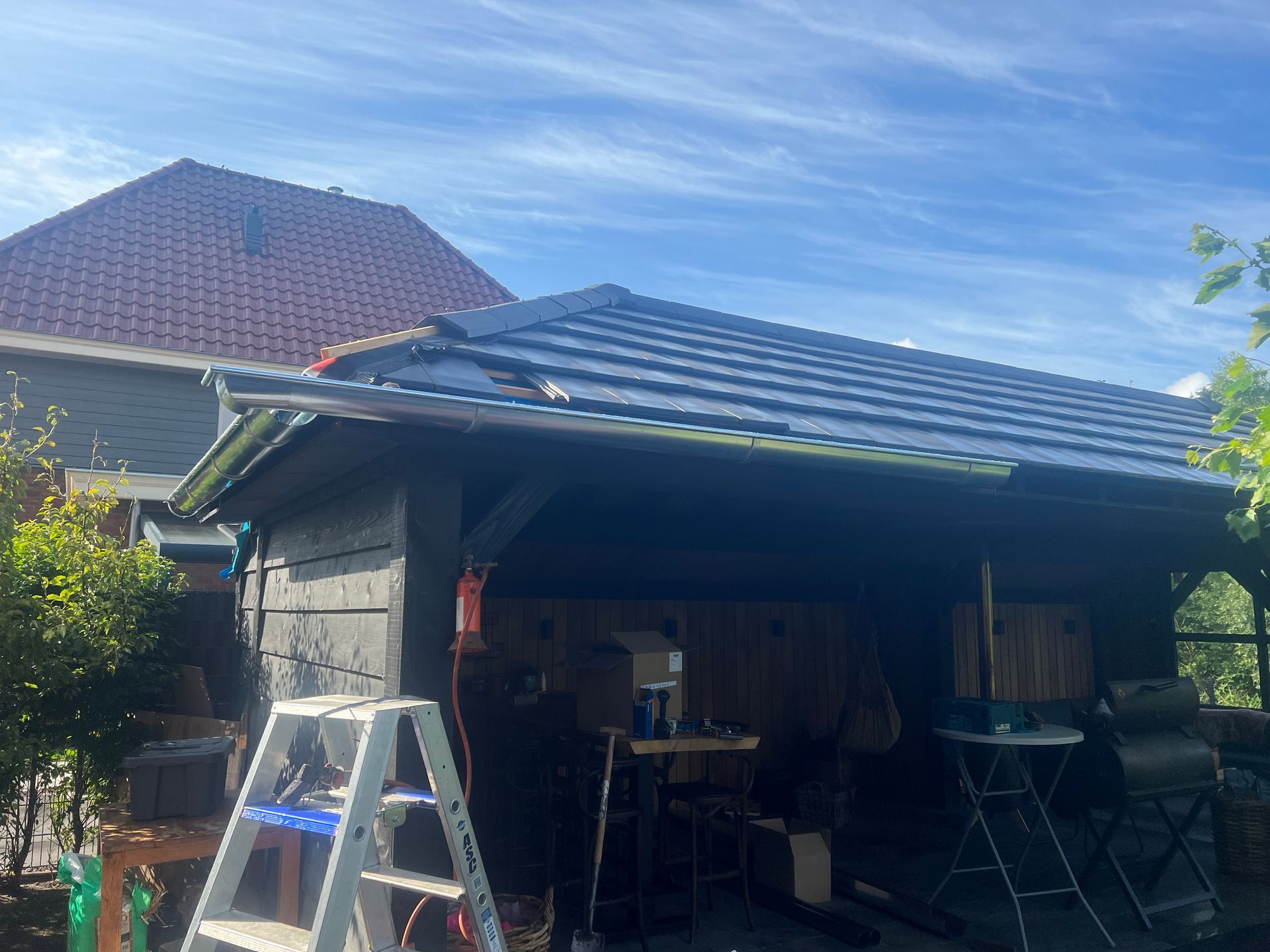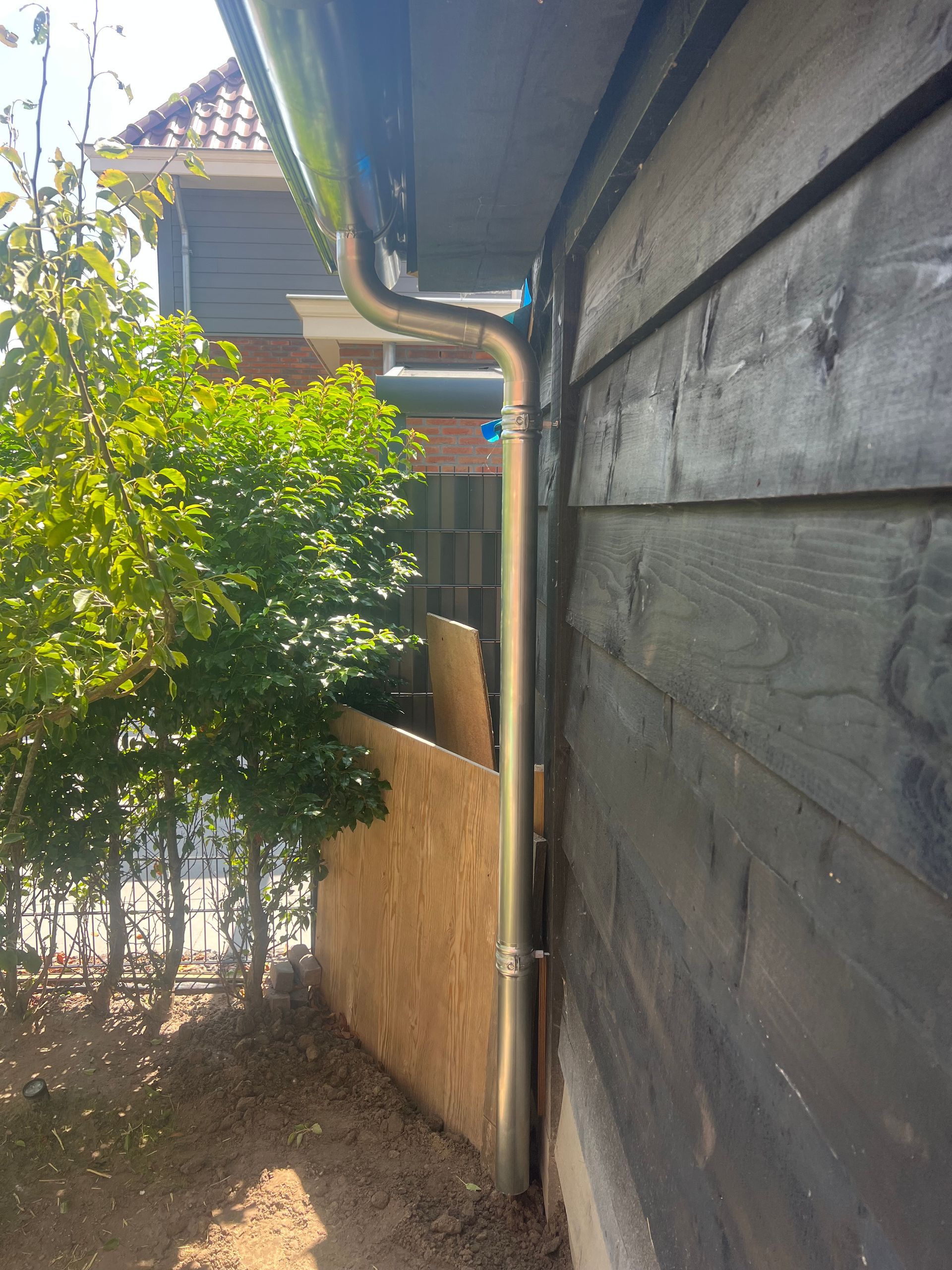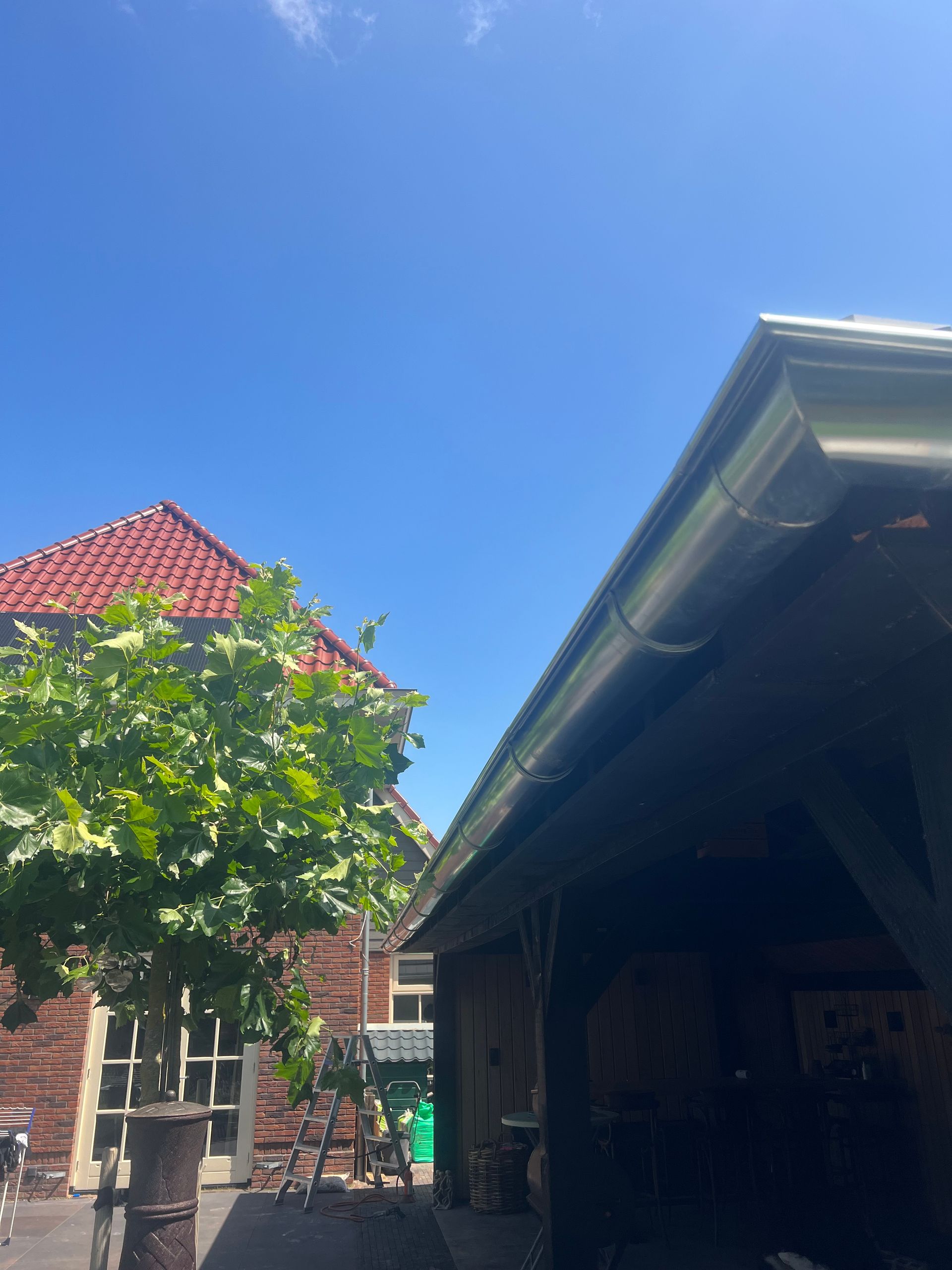Zinken mastgoten rondom een prachtige veranda in Heerhugowaard. Ook zijn er 2 zinken hemelwaterafvoeren aangebracht met dubbele wrongen.