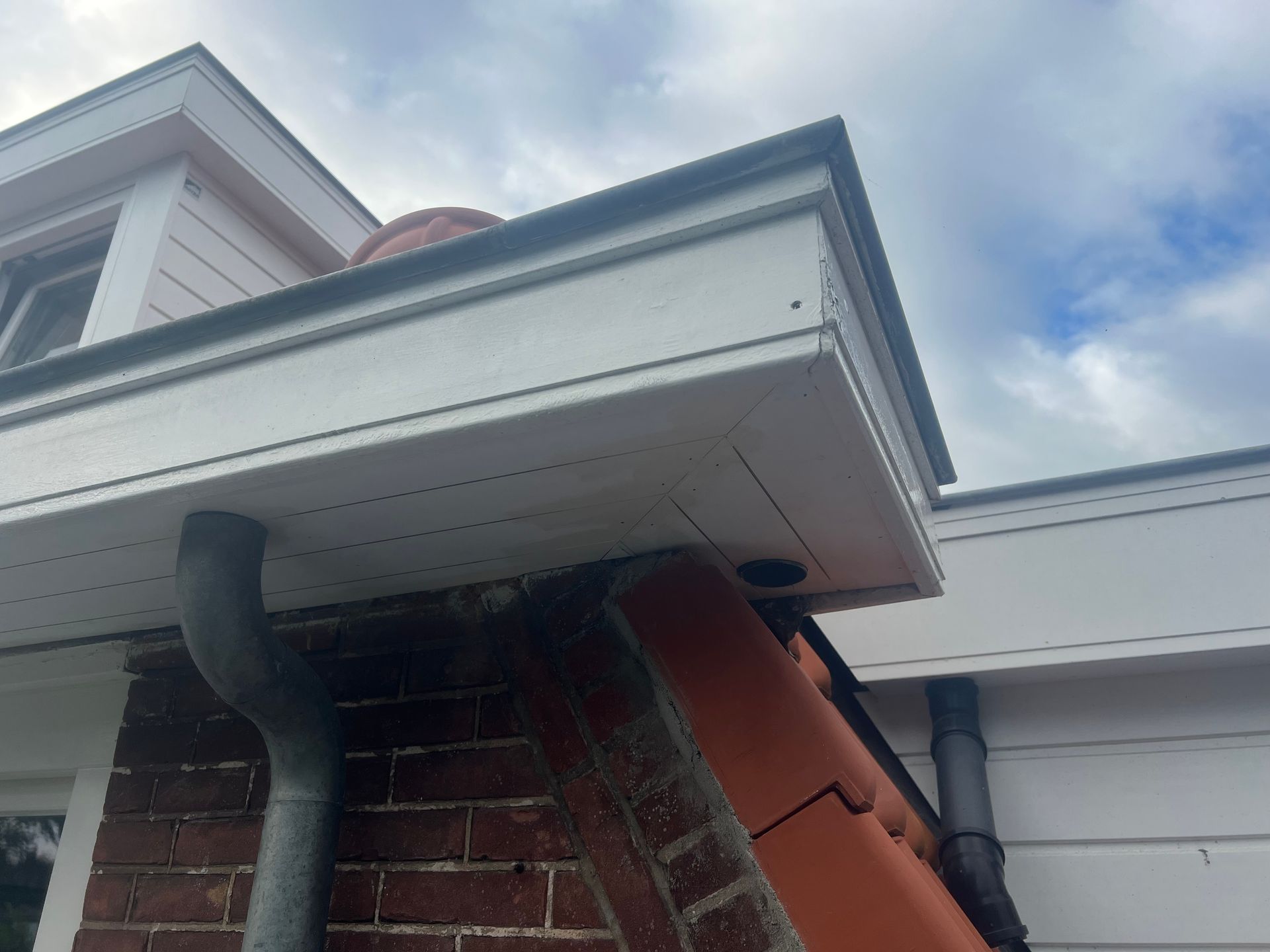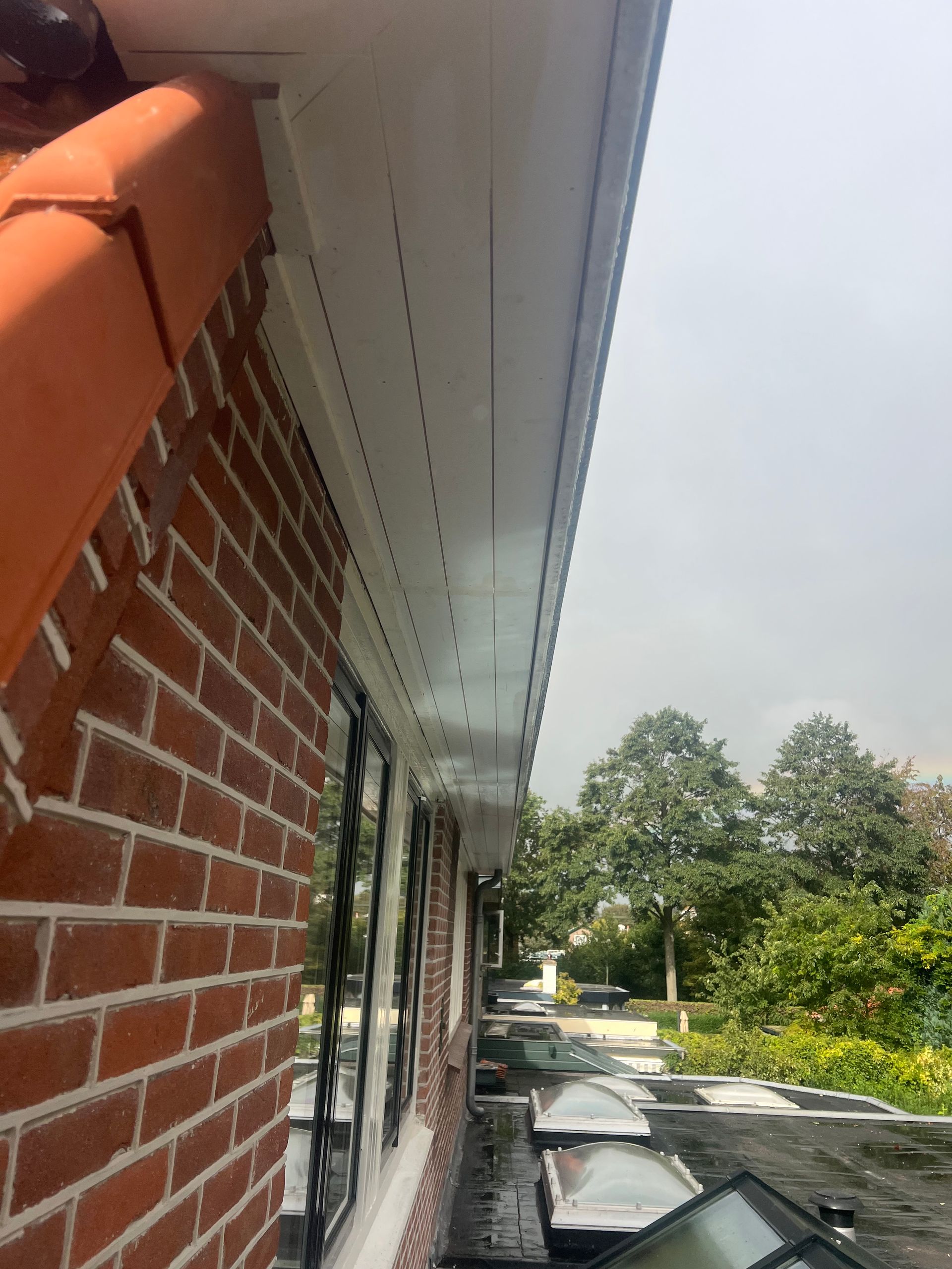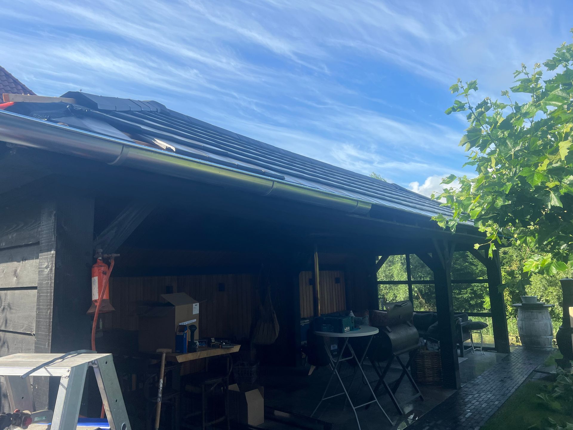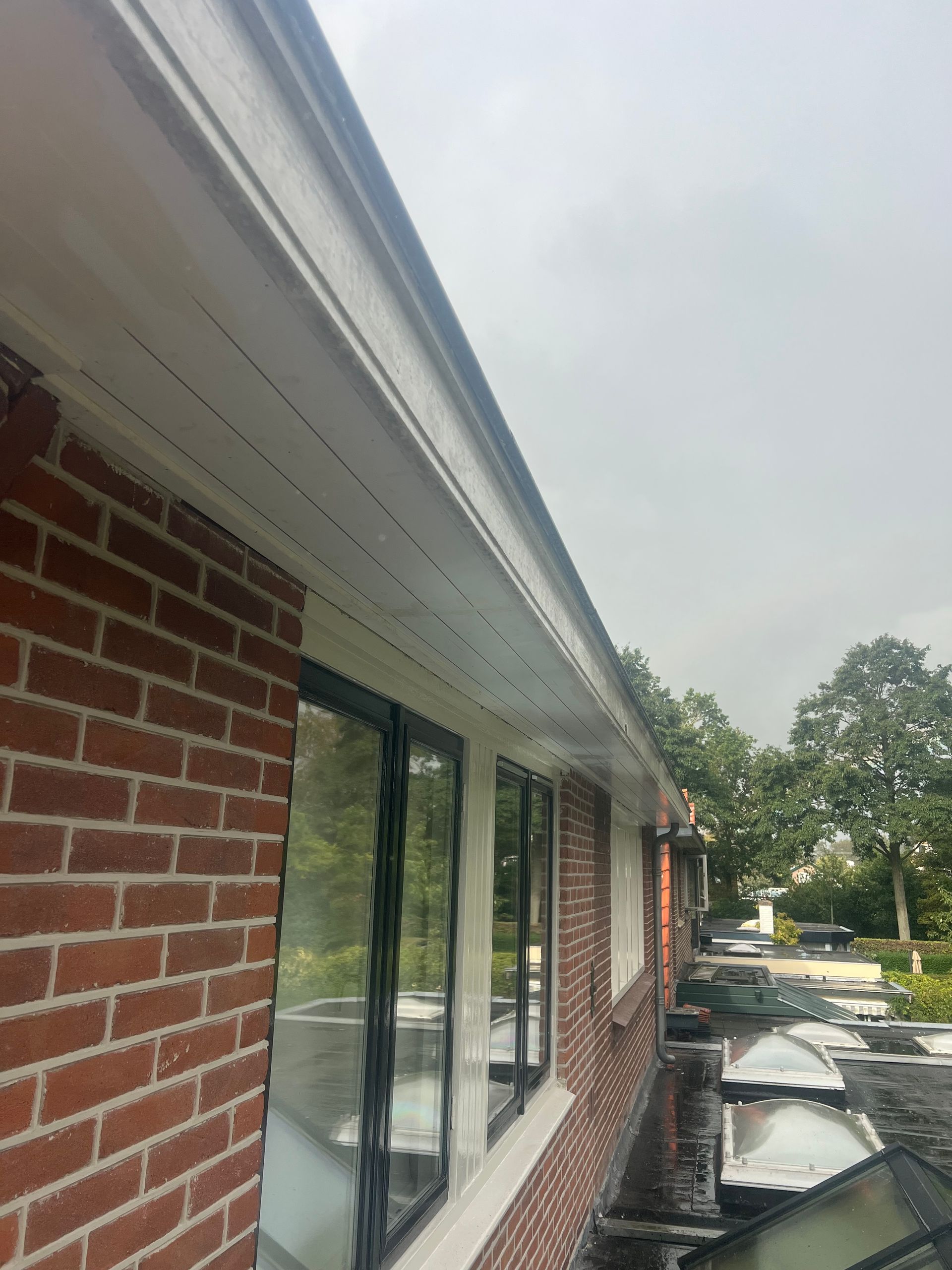 Zinken mastgoten rondom een prachtige veranda in Heerhugowaard. Ook zijn er 2 zinken hemelwaterafvoeren aangebracht met dubbele wrongen.